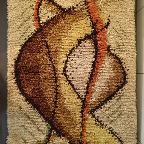 Tyylikäs Tuula Saarenpään retro ryijy myytävänä. Kunto erittäin hyvä. Ei hajuja. Koko 115x155 cm.