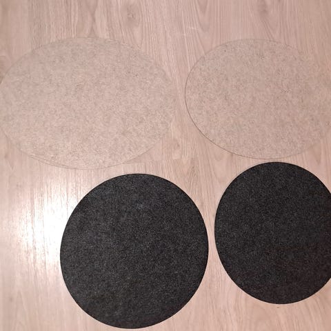 6 kappaletta pöytätabletteja, kaksipuolisia kupari/musta, n. 37cm