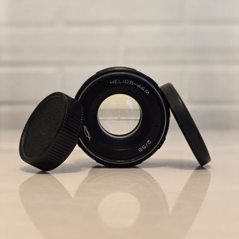 Se kuuluisa tähtibokehia tuottava Industar 61 L/Z Macro -objektiivi. Valmistettu vuonna 1978 LZOS:in tehtaalla. Ikäisekseen erittäin hienossa kunnossa; tarkennus toimii – eikä sisällä ole merkittävää pölyä, mikä haittaisi kuvaamista.