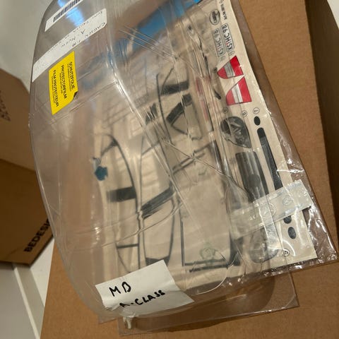 RC-auton kori 1/10 Fiat 131 valoilla, alustan pölysuojalla ja rengassarjalla