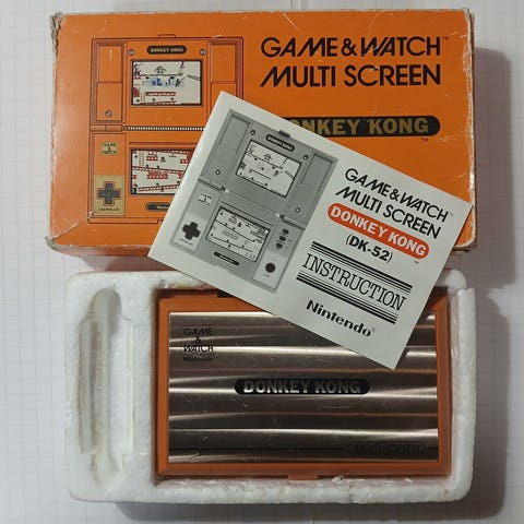 Tuollainen game and watch panorama screen donkey Kong cirkus model MK-96. Paristokotelon kansi ja edessä ollut tarra puuttuu mutta täysin toimiva ja pelattava. Värit hyvät.