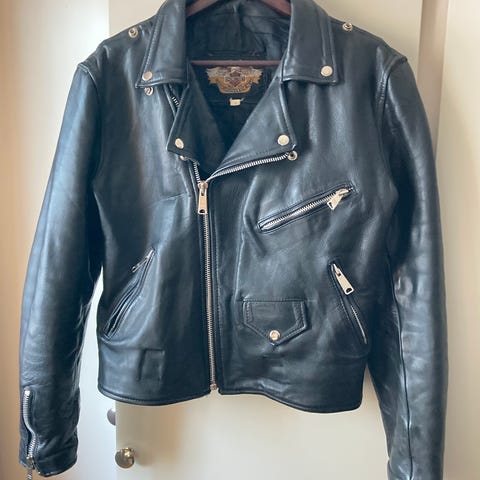 Goldstein nahkatakki, moottoripyöräilyyn tai vapaa-aikaan, kevyttä tekoa, ei suojia.