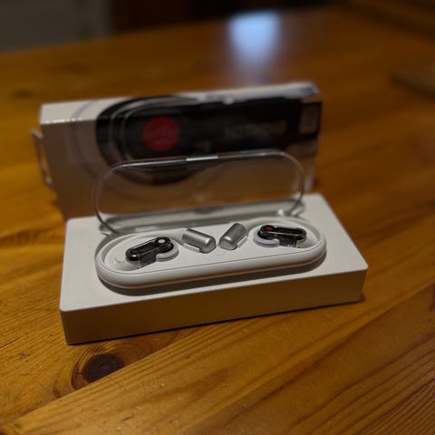 Kuvissa näkyvät Bluetooth korvanapit pitkällä akkukestolla. Mukaan alkuperäinen paketti.