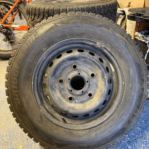 Hyvät nastarenkaat Ford transet peltivanteilla.