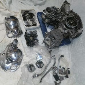 Myyntiin yamaha virago 125cc koneella puutteita on takimmainen sylinteri sekä sylinterin kansi, takavilkut ja penkki ja tankki