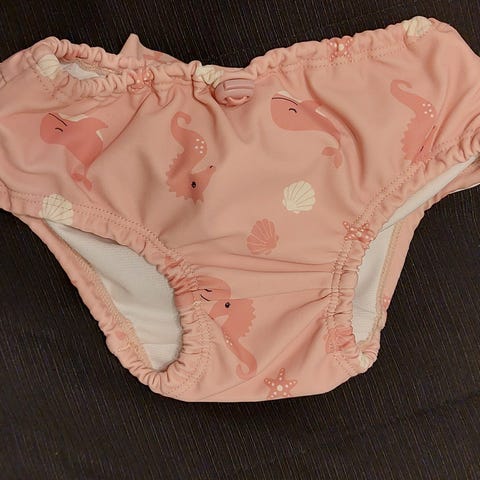 Uima-asu hyvin joustavaa kangasta, joten on helppo pukea päälle. Hyvässä kunnossa, pientä pehmentymää hihoissa (kts kuvat). Pesty hajusteettomasti.