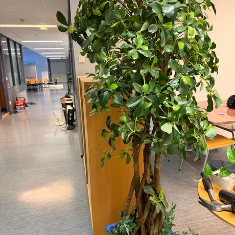 Myydään reilun kokoinen tekokasvi ruukussa.