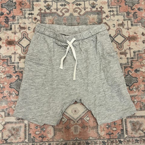 H&M:n kauniin vihreät shortsit koko 92, mutta rennon mallin ansiosta meni meillä vielä ainakin 98 koossa. Kivat sivutaskut ja vyötäröllä solmittavat nauhat. Materiaali 100% puuvillaa. Siistit ja ehjät.