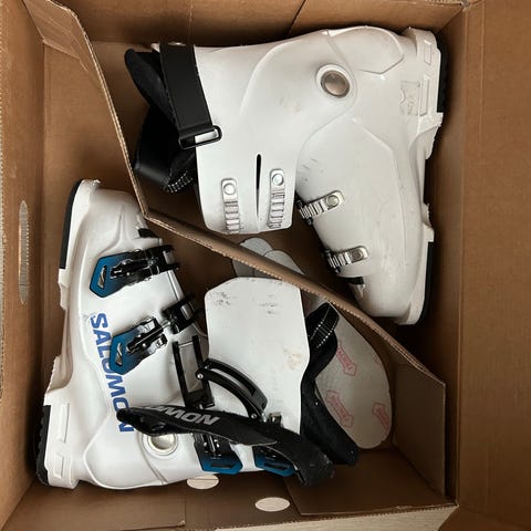 Salomon X Max 60T laskettelumonot valkoisena, koko 19 (sopivat, kun kengän koko 29-31). Hyvin istuvat monot ja kevyet laskettelun aloitukseen. Ostettu Intersportista 1/2024.