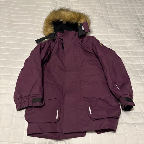 Reimatec Muhvi talvitakki kokoa 122. Ok käytetty kunto. Värjäymää ja kulumaa edessä sekä hihoissa ja kaulusta nakerrettu, mutta yleisilmeeltän vielä siisti takki seuraavalle.