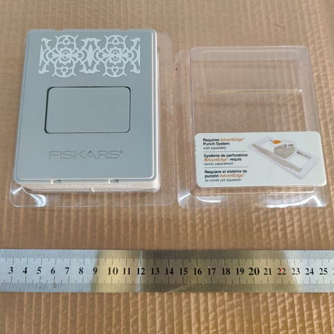 Kompakti kuvioleikkuri / kohokuviointilaite. Kahvan saa taitettua niin että menee pieneen tilaan. Mukaan levyt (käytetyt) ja kuvan stanssit, sekä ohjekirja.