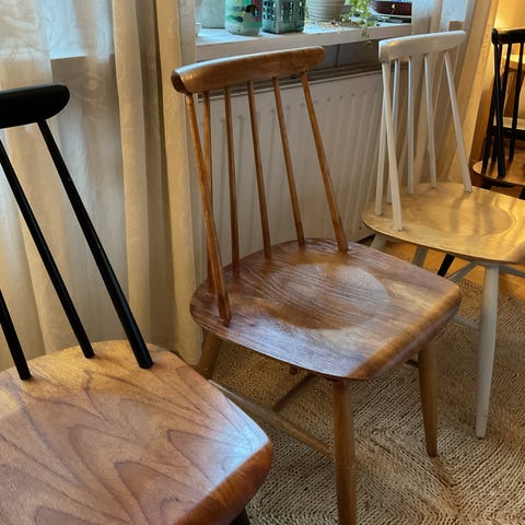 Juliste (koko 70*50 cm), jossa sommitelma Ilmari Tapiovaaran Fanett-tuolista. Tuoli on valmistettu mustasta puusta. Tuolissa on selkeälinjainen muotoilu ja sen istuin sekä selkänoja koostuvat ohuista puutikkuista. Tuoli sopii erilaisiin sisustustyyleihin ja tarjoaa istumapaikan esimerkiksi ruokapöydän ääressä.
