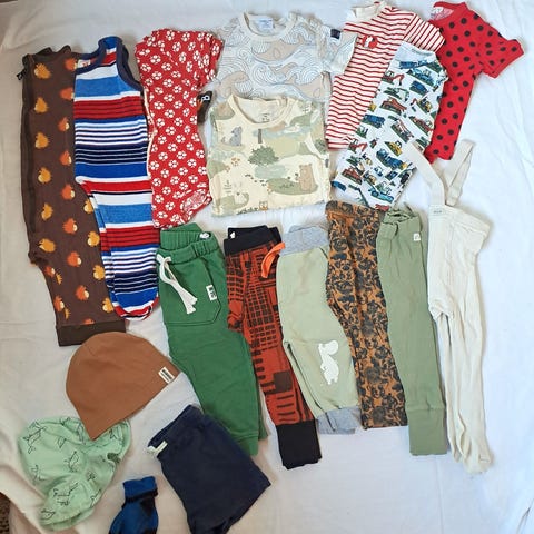 Hyväkuntoinen iloinen ja värikäs vaatesetti koossa 74 seuraavalle. Pakettiin kuuluu 10 vaatetta ja pipo. Merkkeinä Lindex, Kappahl, Gugguu, Polarn o pyret, My wear, Muumi, Ciraf, Kuutti. Osa on diy-vaatteita.