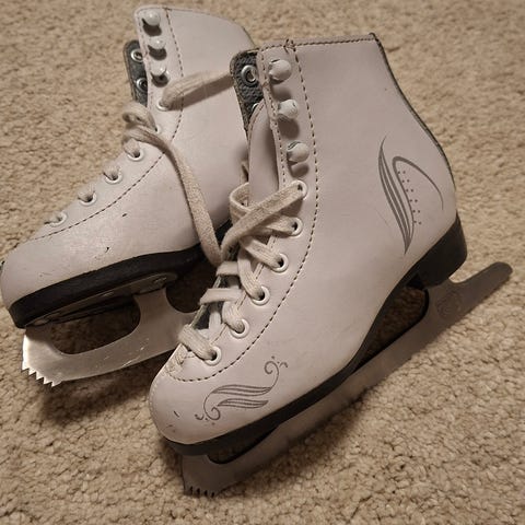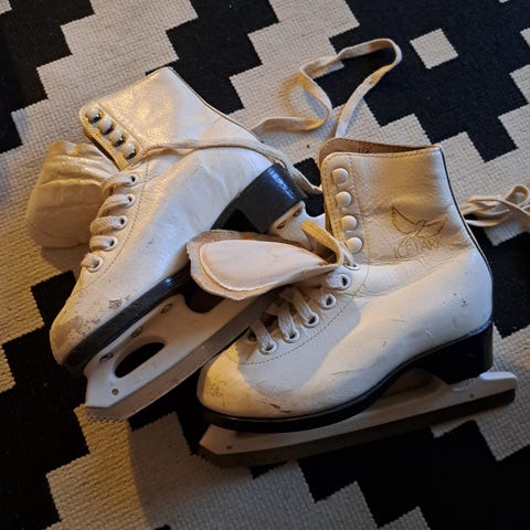 Myydään seuraavalle pienelle jääprinsessalle hyvässä käytetyssä kunnossa olevat kaunoluistimet koossa 25. Nouto Katajanokalta.