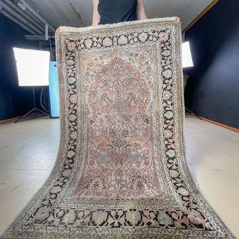 käsinsolmittu itämainen aitomatto villamatto vintage persialainen aito silkki ghom vaaleanpunainen pinkki vaalea pieni matto käsinkudottu käsin käsintehty käsityö antiikkimatto vintagematto helsinki helsingissä