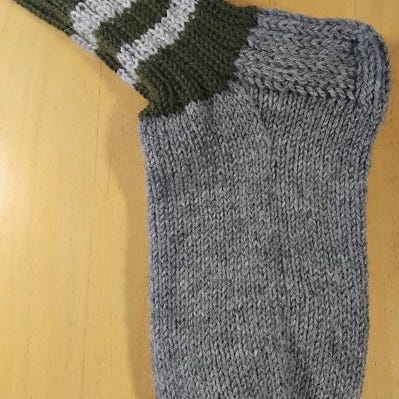 erivärisiä harmaita villasukkia, koko 42-43. Neulottu Novitan seitsemän veljestä langasta. Jalkaterän pituus n 27cm ja sukan korkeus kantapäästä 22-23cm