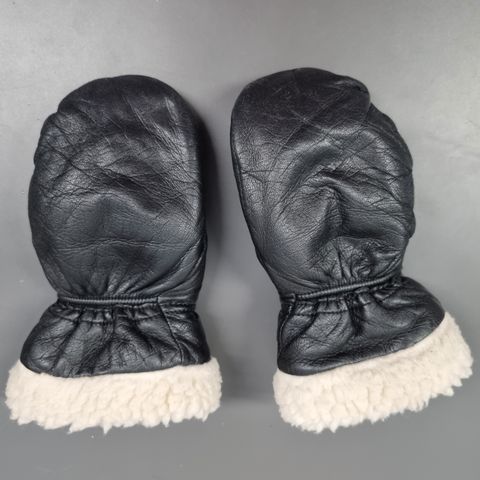 Mustat nahkaiset talvihanskat talvirukkaset 4-6vuotiaalle. Valkoinen karvavuori. Hyvä kunto