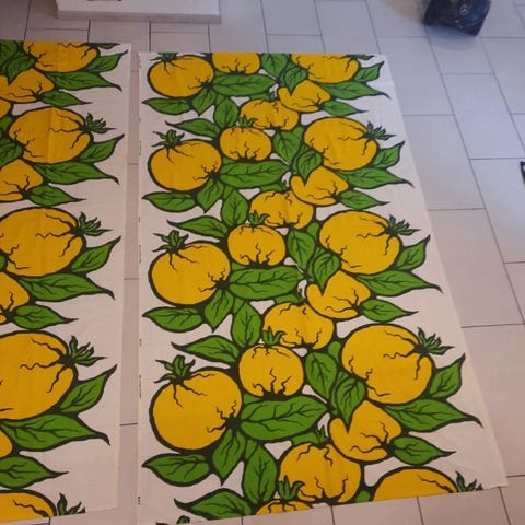 Myydään Tampellan retro verhot,kuosin nimi on Space 1. Suunnittelija Perttu Mentula,kangas 100% napakkaa puuvillaa,värit ovat kirkkaat.En tingi