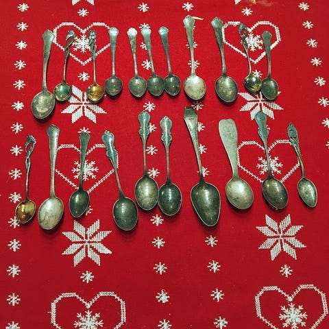 Myydään käyttämättömiä pöytähopeita. Ei nimikoituja. 20-40v ikäisiä.