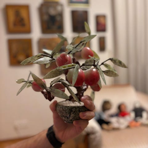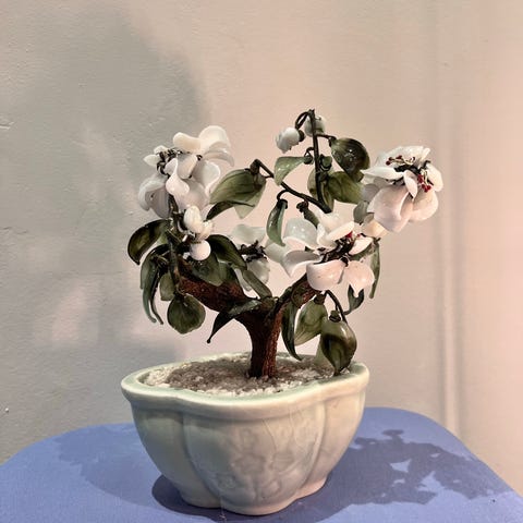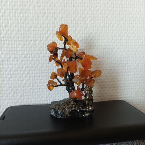 Keraaminen bonsaipuu. Hyvässä kunnossa mutta kaksi lehteä on irronnut. Leveys 18cm ja korkeus 30cm.