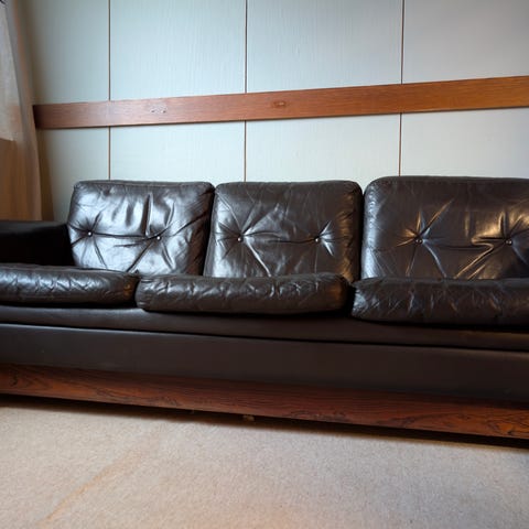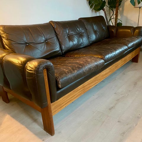 Myydään musta nahkasohva pois uuden sohvan tieltä. Tässä on juotu monet aamukahvit ja natuviinit. ;-)