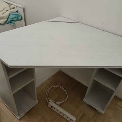 Hyväkuntoinen kulmatyöpöytä. Pieniä käytönjälkiä muutama.
