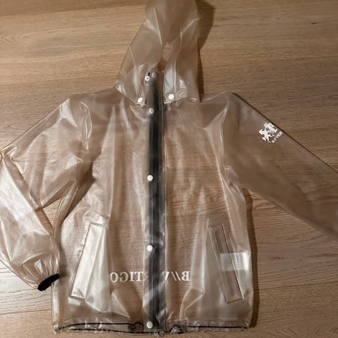 Sadetakki jossa erityisesti ratsastukseen suunniteltuja yksityiskohtia.