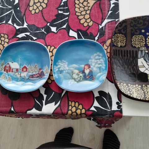 Keraamisille laatoille tehty posliini maalausta ja puiset kehykset,