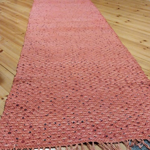 Punainen itämaistyylinen käytävämatto. Ei villaa mutta pehmeä. Koitakoti. Tarvittaessa saattaa kulkeutua Kuopiossa.