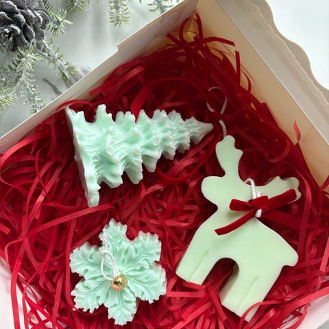 Käsintehty soijavahakynttilä talo-teemaisessa setissä (kuten kuvissa).