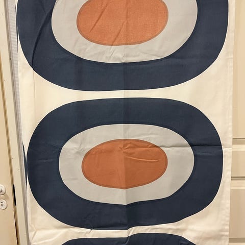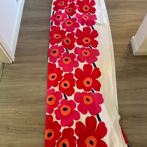 Kaapissa hillotut ja erittäin vähäisellä käytöllä olleet Marimekon Mini-unikko verhot, 2 kpl.