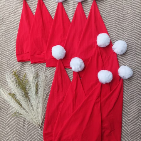 Harrasteompelijan tekemiä tonttulakkeja.