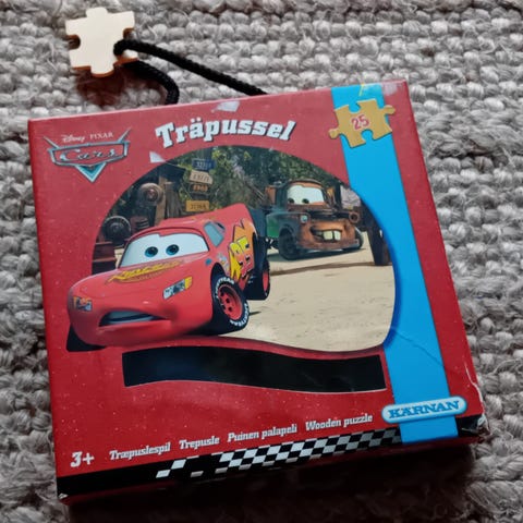 Käyttämättömän näköinen Cars-sarjan puinen palapeli. 25 palaa. Myös pakkaus on käyttämättömän näköisessä kunnossa, joten sopii annettavaksi lahjaksi. Myynnissä Lohjalla, mutta kulkeutuu omien menojen mukaan Kamppiin. Hp. 10 euroa