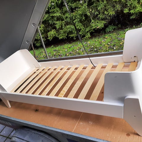 Samaan aikaan ostettu erittäin siisti patja ja vedenpitävä patjansuojus, sekä irrotettava sängynlaita. Halutessa nämä ja sänky yht. 169€.