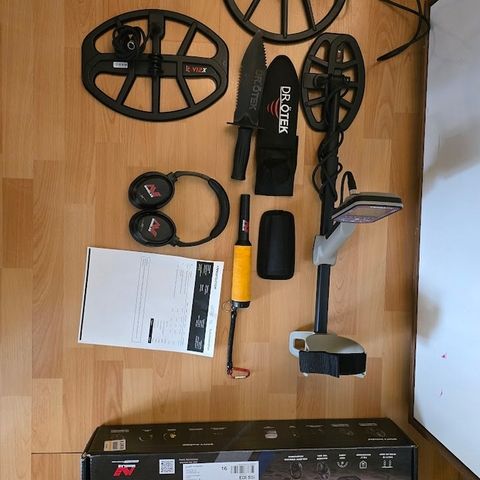 XP deus metallinpaljastin 11" ja 9" keloilla. Kohtuu siistikuntoinen ja toimiva paketti. Langattomat WS4 kuulokkeet, ohjekirja, kiinan pinpointteri ja latauspiuhat mukaan. Löytyy myös lisäantenni veden alta etsimiseen.