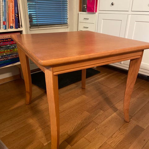 Näppärä pienehkö sohvapöytä. Vastamaalattu Rust-Oleum vaalean beigen sävyllä (keijukaisen siivet, matta).