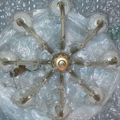 Hyväkuntoiset vintage kattokruunun varjostimet. 5 kpl sarja, pellavan värinen sisäpuolelta muovitettu koristenauhalla. Ryhdikkäät varjostimet joissa metalliklipsit joilla tulee kiinni lamppuun. Korkeus 10cm ylä halkaisija 8,5 cm ja ala halkaisija 11,5 cm.