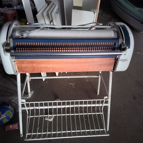 UPO -merkkinen sähkökäyttöinen mankeli. Vanha mutta toimiva. Mukana musta metallinen teline. Nouto Pyhtään Siltakylästä. Painava, omat kantajat mukaan:)