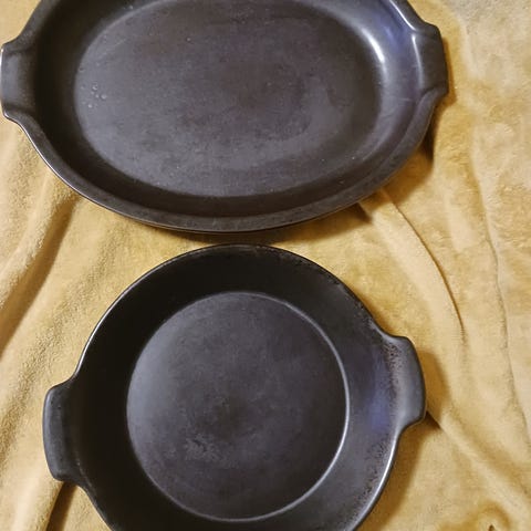 2 kpl pientä uunipataa lasitettua savea. Korkeus 8cm, halkaisija 13,5cm. Hinta yht 5e.