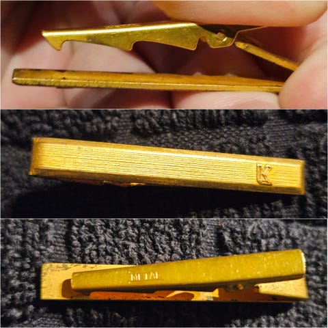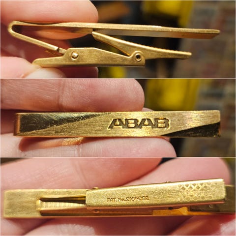 Kultainen solmioneula solmiopidike jossa edessä lukee Trima ja takana on jotain tekstiä. Pientä normaalia ajanpatinaa / säilytyksen jälkeä joten katso kuvat.