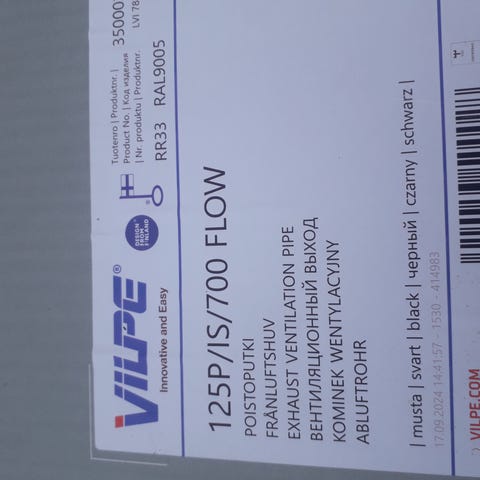 Myydään uusi Vilpe 160P/ ER/ 700 Intake tuloputki väriltään harmaa.