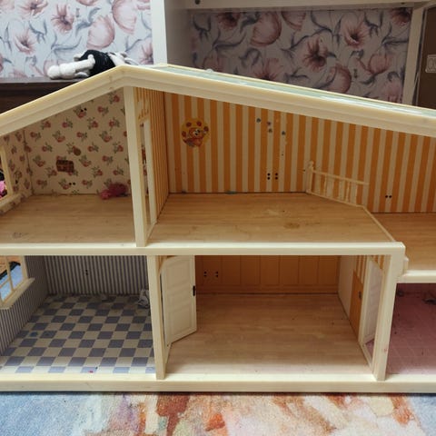 Tarjolla kahvipakettia (suodatinjauhatus) vastaan ihana isohko nukkekoti. Käytetty kuvien mukainen kunto, perussiisti.