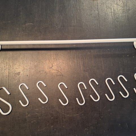Myynnissä tanko ja 5 koukkua. Tanko ei Ikea.