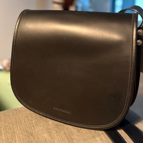Myynnissä Marimekon nahkainen Salli Lea -satulalaukku. Italialaista nahkaa.