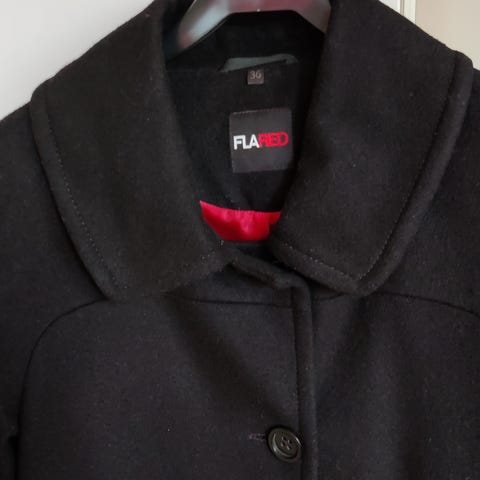 Takin hoito-ohjeessa on vesipesu kielletty. Olen leikannut materiaali lapun vahingossa pois. Vain hoito-ohje jäänyt. Takki on pehmeää ja kevyttä villasekoitetta. Se laskeutuu päällä kauniisti eikä ole karhea tai pistelevä materiaaliltaan.