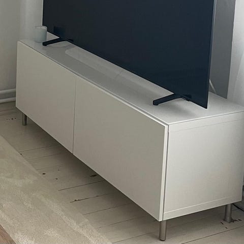 Myydään ylimääräiseksi jäänyt Ikean valkoinen Bestå tv-taso. Ovet avautuvat painamalla, mekaniikka on ehjä ja toimii hyvin. Runko on valkoinen, ovet ovat valkoiset ja kiiltävät.