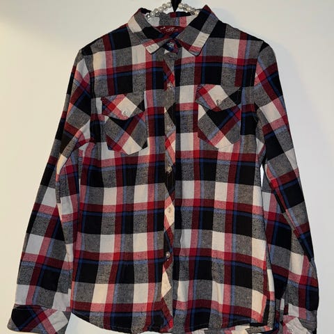 Puuvillainen flanellipaita. Merkattu koko C50/52, mitattuna rinnanympärys n. 135 cm, hihan pituus n. 56 cm. Käytetty mutta siistissä kunnossa, napitus vasemmalta. Nouto tai postit.