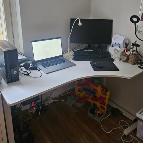 Ikean sähkötyöpöytä. Pöydän takaseinään tehty reikä johtoa varten. Myydään muuton vuoksi.