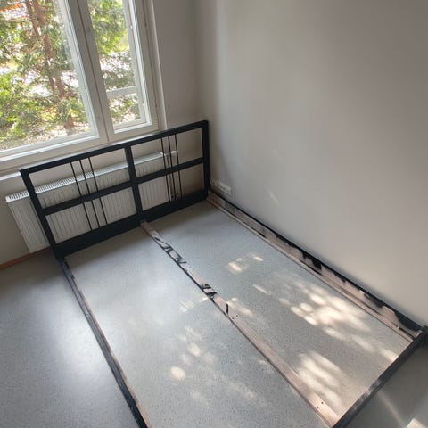 Myynnissä 140cm leveä ja 200cm pitkä sänky petauspatjalla. Vain nouto ja voin auttaa kantamisessa.