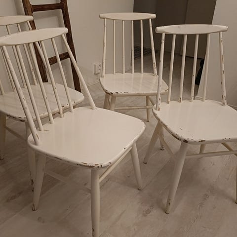 4 kpl tukevia hyväkuntoisia pinnatuoleja. Tuolit maalattu ja kunnostettu.